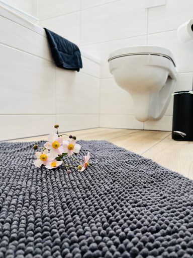 Badezimmer: Ein geräumiges Bad mit Badewanne, Waschmaschine, Fön, Handtüchern und Badevorlegern für Ihren Komfort.