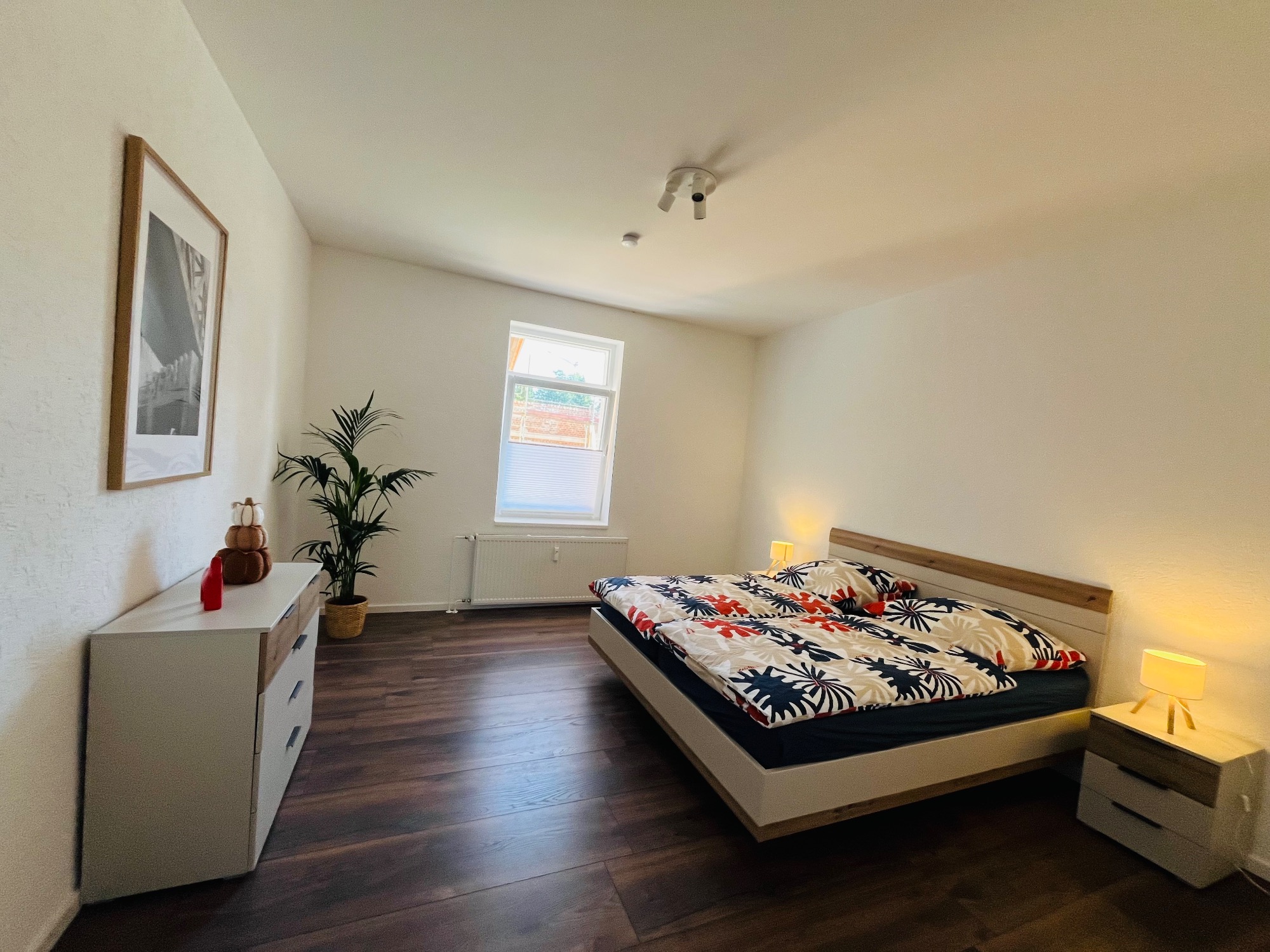 Schlafzimmer: 2 Großzügige Räume, ausgestattet mit Doppelbetten 180x200 und Kommoden